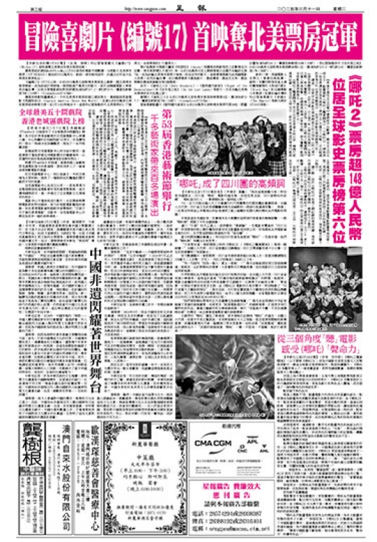 《哪吒之魔童鬧海》自2月22日在香港上映以來,頻頻打破票房紀錄。截至8日14時28分,該片在港澳地區的票房已衝破4000萬港元。上映首日,就成為香港動畫電影開畫票房冠軍。第二周就打破了內地電影在香港保持了22年的票房紀錄。