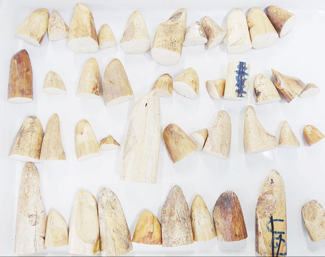 拱北海關在上月(二月) 十四日下午一時多查獲案件,涉事男子經拱北口岸入境時沒有將隨身的袋子放入 X光機檢查,並有意混入通關人群企圖逃避海關檢查,關員發現攔截,並在男子的包內查獲四十三個疑似動物原牙,淨重約一點四公斤,經拱北海關技術中心鑒定,確認為河馬牙。