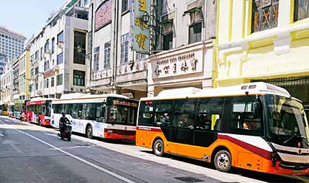 根據交通事務局數據,去年巴士服務總乘車人次達二點二七億,日均乘車人次為六十二點四七萬,同比二零二三年上升約百份之六,兩個數字都已經貼近二零一九年的二點二九億和六十二點七二萬。去年兩巴共營運八十六條路線,日均九千六百四十班次,粗略估計,平均每班次載客六十四人。近年特區政府積極落實「公交優先」政策,巴士服務是居民和旅客都會用到的熱門公共交通工具,這一天在亞馬喇前地,無論上午或下午,每條候車道基本上都有乘客排隊等候上車,有時甚至因為巴士已載滿,乘客只能等下一班車。
