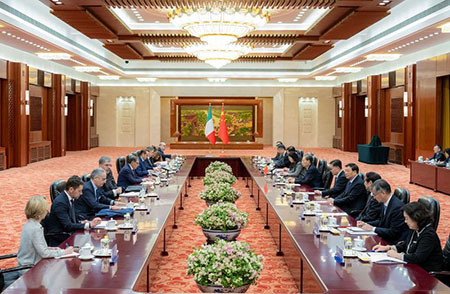 趙樂際表示,中方願同歐方以建交50周年為契機,推動中歐關係持續穩定健康發展,希望意方繼續為此發揮積極作用。