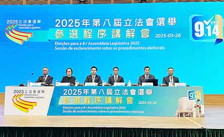 立法會選管會在科學館昨日傍晚舉行第八屆立法會選舉參選程序講解會,逾二百人出席。立法會選管會主席盛銳敏表示,四年一度的立法會選舉,是澳門特別行政區廣大選民直接參與的一項重要政治活動,通過行使法律所賦予的參選和投票等權利,共同為組成澳門特區新一屆立法會作出貢獻。澳門特區去年四月通過修訂《澳門特別行政區立法會選舉法》,為進一步落實「愛國者治澳」原則,設置了確保資格審查程序順暢運作的機制,同時亦加強遏止違規行為及優化選舉流程。
