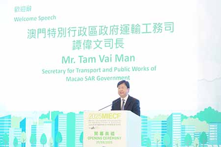 運輸工務司司長譚偉文致辭時表示,特區政府正全力融入國家發展大局,貫徹落實習近平主席去年來澳出席“慶祝澳門回歸祖國25周年大會暨澳門特別行政區第六屆政府就職典禮”時,對澳門提出的“四點希望”,並全力配合國家實現“雙碳”目標。澳門特區政府將不遺餘力,團結社會各界貫徹落實國家提出的重要指導方針,致力推動生態文明建設,促進社會高質量及可持續發展。期望大家透過一系列高規格的專題會議、綠色論壇、項目推介會,以及綠色配對等平台,掌握具前瞻性和創新的環保信息,發掘綠色商機,共同推動全球環境保護事業的發展。