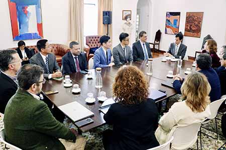 教青局十分重視和支持培養中葡雙語多領域人才,持續攜手澳門高校深化和拓展與葡語國家高等教育機構在科研和教育方面的交流合作。是次參訪團延續2024年第三屆中國與葡語國家高校校長論壇中的澳葡高教合作關係,分別訪問曾來澳參與論壇的科英布拉大學及埃武拉大學,與科英布拉大學法學院院長Jónatas Machado及埃武拉大學校長Hermínia Vasconcelos Vilar進行會面,深入探討學術合作、師生交流、聯合研究等議題,以及了解澳葡高教合作的科研成果。參訪團亦訪問了葡萄牙最大的科技園區Tagus Park,並與園區代表Eduardo Baptista Correia進行交流,了解葡萄牙對接產業需求、培養跨學科人才的教育模式及在推動科技創新方面的成功經驗。