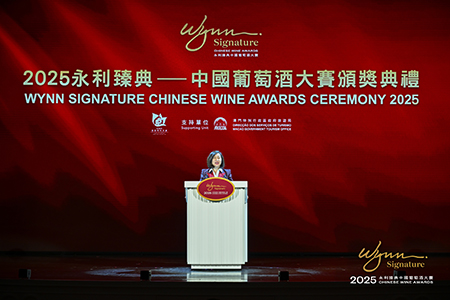 【特訊】由澳門特別行政區政府旅遊局支持、永利渡假村旗下精緻體驗品牌「Wynn Signature 永利臻典」傾力打造的「2025 永利臻典——中國葡萄酒大賽」頒獎典禮於 4 月 11 日晚盛大舉行。來自全球各地的逾 200 位葡萄酒專家、中國酒莊代表、業界人士、國際媒體和葡萄酒愛好者共襄盛舉,到場見證了象徵中國葡萄酒最高榮譽的各項年度大獎逐一揭曉及榮耀加冕。永利隨即啟動了得獎佳釀的全球推廣計劃,以旗下星光閃耀的頂級餐廳陣容及強大的全球資源網絡,全力賦能中國精品葡萄酒在全球範圍內的市場拓展及品牌傳播。