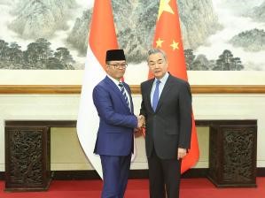 【中新社北京4月21日電】4月21日,中共中央政治局委員、外交部長王毅在北京同印尼外長蘇吉約諾舉行會談。