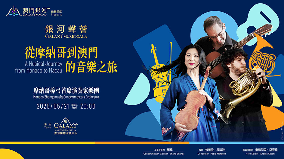 銀河聲薈:從摩納哥到澳門的音樂之旅,時間:2025 年 5 月 21 日晚上 8 時,地點:銀河國際會議中心銀河演講廳。
