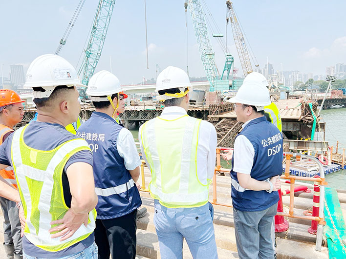 公共建設局、海事及水務局和勞工事務局對事件高度重視,並已即時派員到場了解情況,向相關承建單位發出停工通知,勒令全面停工,並將安排打撈施工機械工作,同時對相關水域採取相應措施,以免在打撈作業期間對水域造成污染。