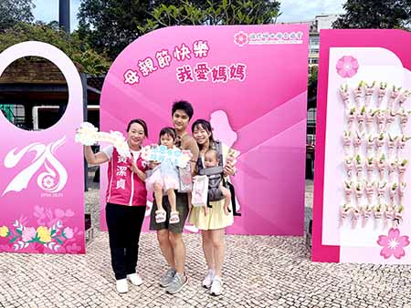 另外,為慶祝一年一度的母親節,婦聯昨日在塔石廣場設有母親節「閃拍」環節,利用大型相框和花束等影相道具,為各個家庭提供充滿節日氣氛的合照,讓每位母親在收到花朵的同時,留下與家人共同分享值得紀念的溫馨時刻,同場設有多個體育攤位遊戲,適合全家一起參與,促進親子互動,增添歡樂氣氛。