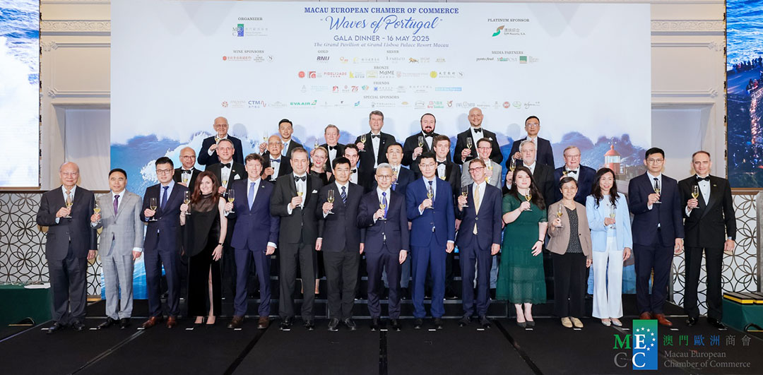 【特訊】澳門歐洲商會第十一屆周年晚宴於 2025 年 5 月16 日假澳門上葡京綜合度假村上葡京禮堂舉行,共有 330 位嘉賓出席。以經濟財政司司長戴建業爲首的澳門特別行政區政府代表,聯同中央政府駐澳門代表、歐盟多國外交使團成員、和一衆商界及社會賢達參與是次盛會。