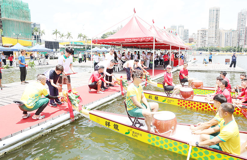 出席祈福儀式的嘉賓包括體育局局長張子軒、澳娛綜合度假股份有限公司董事梁安琪、中國澳門龍舟總會會長賴百齡、行政公職局代局長馮若儀、市政署市政管理委員會委員關施敏、體育局代副局長李詩靈及莫子恆、消防局副局長林俊生及中國澳門龍舟總會理事長黃家豪。張子軒表示,報名反應不錯,如果有不同的人或者不同性別比例去組成,會讓一些隊伍更容易組隊,今年的反應很好,混合組剛推出報名時都得到大家正面的回應,會評估成效,聆聽大家意見,繼續將比賽做好。