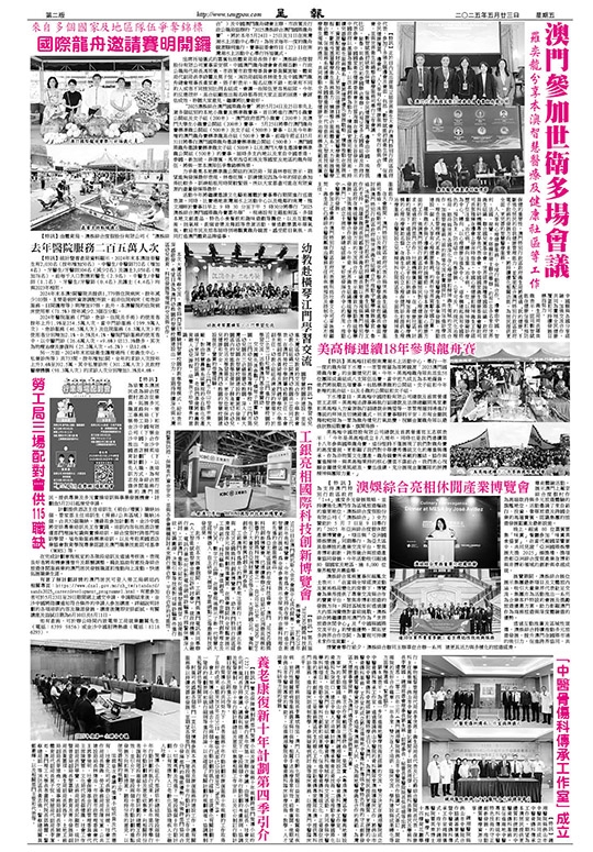 【特訊】由體育局、澳娛綜合度假股份有限公司(“澳娛綜合”)及中國澳門龍舟總會主辦,市政署及行政公職局協辦的“2025澳娛綜合澳門國際龍舟賽”,將於本年5月24日、25日及31日在南灣湖水上活動中心舉行。為祈求每年一度的龍舟競渡順利進行,賽事組委會昨日(22)日在南灣湖水上活動中心舉行祈福儀式。