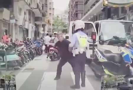 治安警表示,昨日下午約五時十分,交通警員於羅神父街周邊檢控違例車輛期間,一輛貨車違泊於通衢街(時代工業大廈旁),在警員作出勸喻期間,該貨車司機以粗言侮辱警員並亮出一枝金屬油壓桿作威脅,警員隨即對司機作出警告並要求其出示證件,但其沒有理會並駕車離開。警員立即駕駛電單車上前追截,並於羅神父街近宏基超市將其截停,在警員要求司機下車跟進事件期間,司機一度情緒激動,並下車以上述油壓桿襲擊警員,其後被警員及途經現場的休班警員及市民合力制伏。