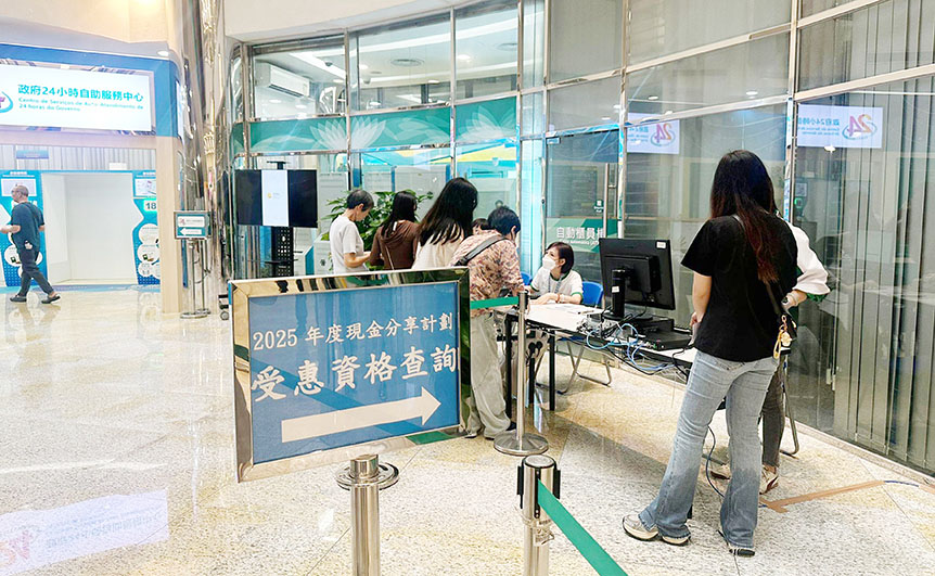 特區政府對本年度現金分享發放資格作出調整,市民登入「一戶通」或現金分享計劃網頁即可查詢是否符合發放資格,亦可到五個政府服務中心專櫃查詢,若因法定理由身處澳門以外地方,且經計算後符合在澳一百八十三日要求,可於今年六月十八日至二零二八年十二月三十一日帶同證明文件透過「一戶通」、現金分享計劃網頁、親身、代交或郵寄向社會保障基金提出聲請。在黑沙環政府綜合服務大樓,不時有市民到場了解情況,有市民稱,過去一直在澳門租住房屋,去年退休後到內地居住。知道現金分享增設條件後,來查詢聲請手續。
