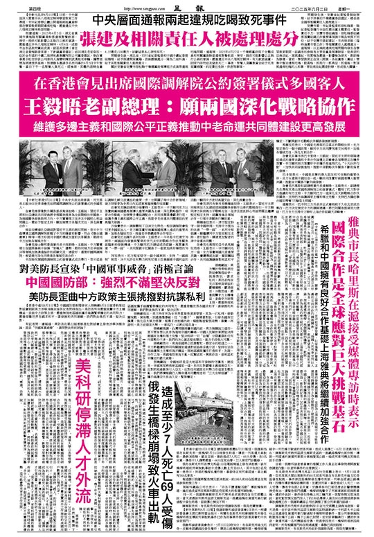 【中新社香港5月31日電】中共中央政治局委員、外交部長王毅30日在香港會見出席國際調解院公約簽署儀式的多國客人。