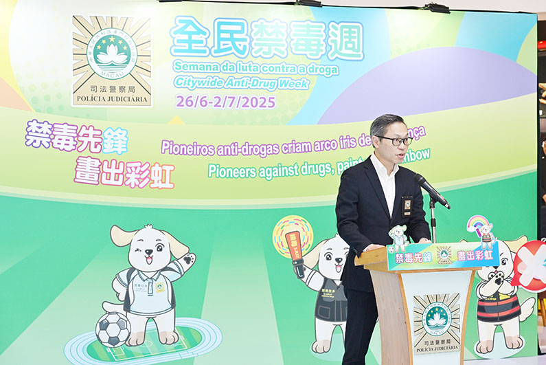 「全民禁毒週」活動於六月二十六日至七月二日期間在氹仔星皓廣場舉行。啟動儀式於活動昨日中午進行,邀得廣東省禁毒辦第一副主任、公安廳禁毒總隊總隊長劉衛國,司警局局長薛仲明以及多位社團負責人一同主禮。薛仲明致辭時表示,司警局一直視禁毒為核心任務,多年來堅持以「重情報、強打擊、宣禁毒、促技術」四大導向縱深推進各項禁毒工作,竭力為社會建設堅固的禁毒防線。儘管近十年來本澳涉毒案件保持低案發率,禁毒工作依然面臨諸多嚴峻挑戰。