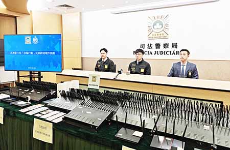 【特訊】港澳警方聯手瓦解一個跨境電詐集團,三次行動司警共拘七名集團成員,其專門在港澳的住宅架設GOIP設備,主要撥打假冒支付寶客服的詐騙電話,由今年四月至今兩地共有一百六十八名事主受騙,損失折合超過二千二百萬澳門元。最新的第三次行動被司警拘捕有三人,分別姓NG,男,三十一歲,馬來西亞外僱,任職油站經理;姓LIN,男,二十七歲,馬來西亞人,無業;姓SE,女,三十四歲,印尼外僱,家傭。涉及使用電腦裝置以模擬流動電信服務站、清洗黑錢及犯罪集團被送交檢察院處理。