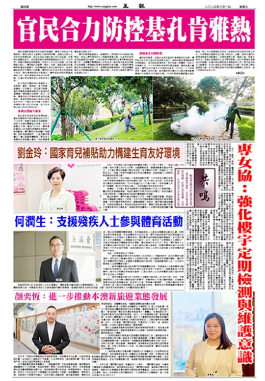 近日,颱風“韋帕”襲澳期間,有大廈外牆紙皮石剝落。澳門專業女性協會理事鍾慧楠表示,近年涉及樓宇外牆紙皮石、飾面或石屎剝落的事故時有發生,經歷颱風及暴雨沖刷恐進一步加速外牆老化,呼籲業主、管理機關及管理公司加強關注,及時處理樓宇安全隱患,並建議政府通過法律優化、加強巡查,以及降低檢測、維修資 助申請門檻等,提高居民定期進行樓宇檢測及維修保養的意識,保障社區安全的同時,也能達致市容美化與改善生活環境的效果。