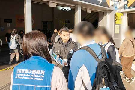 為防範青少年學生被不法分子利用,澳門海關持續開展宣傳教育工作,定期走訪校園舉辦專題講座,向學生講解參與水客活動的法律後果及危害;同時亦聯同教育及青年發展局於關閘口岸定期開展宣傳活動,提醒青少年學生慎防不法份子的欺騙及利誘,切勿參與不法販運活動。