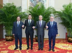 【中新社雲南安寧8月15日電】(記者 李京澤)8月15日,中國、老撾、緬甸、泰國在雲南安寧舉行外長非正式會晤,中共中央政治局委員、外交部長王毅,老撾外長通沙萬,緬甸外長丹穗,泰國外長瑪里出席。