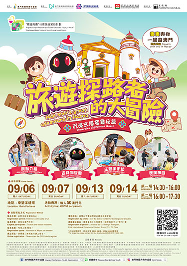 “旅遊探路者的大冒險 - 沉浸式燈塔尋秘篇”於9月6日至14日期間逢周六日下午在東望洋燈塔舉行。澳門旅遊吉祥物“麥麥”與執業導遊以澳門旅遊大使的身份,透過生動有趣的卡通人偶互動方式介紹社區景點,現場設小型流動文藝演出,提升文旅體驗。