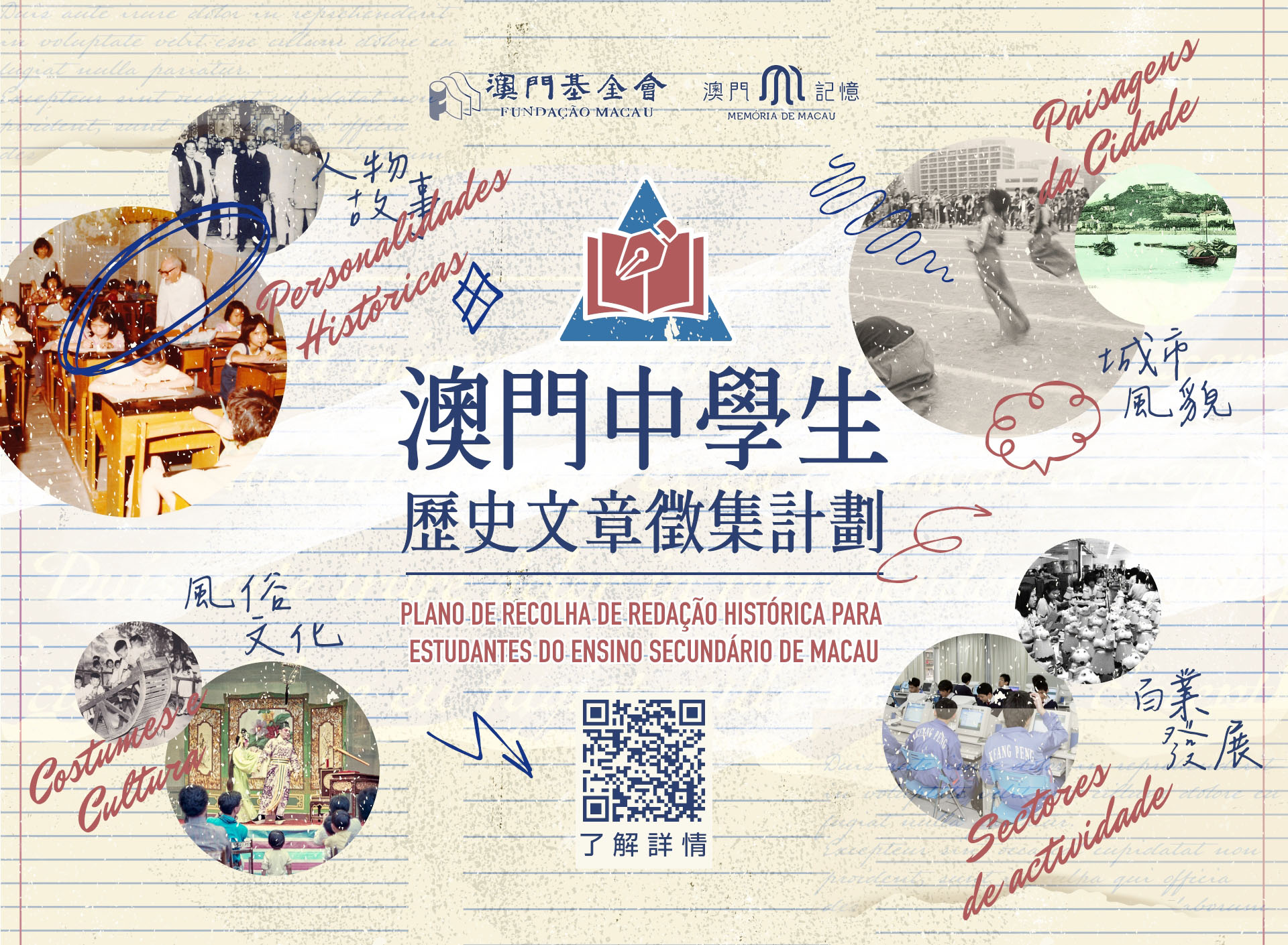 為推動澳門歷史文化傳承,澳門基金會“澳門記憶”文史網特別推出“澳門中學生歷史文章徵集計劃”。該計劃面向全澳中學生,鼓勵同學們結合課堂知識及文史網上豐富資源,撰寫澳門文史相關文章,記錄澳門獨特的歷史文化內涵。
