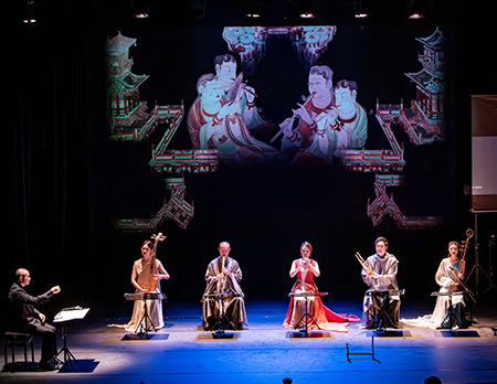《共譜絲路文明華章:一場跨越千年的沉浸式對話》作為本次「絲路」大展的重要延伸,這場音樂會的珍貴與稀有,在於它並非「仿古」,而是一次基於深度研究的創造性復原與昇華,與「絲路」大展有很強的學術關聯。莫高窟壁畫中描繪的鳳首箜篌及五弦琵琶等數十件樂器,其形制、材質與演奏法早已失傳。《消失的藏經洞》音樂會讓樂器從壁畫中「走下來」。在舞臺上,復原的古樂器將不再是靜態展品,而是真正奏響千年遺韻的主角。譚盾以展覽中的敦煌文化元素為創作源泉,將古樂復原與現代表達相結合,編織成一幅流動的敦煌畫卷。