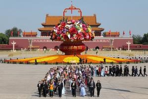 少年兒童和各界代表也依次走到紀念碑前,獻上鮮花並瞻仰紀念碑。敬獻花籃儀式由中共中央政治局委員、北京市委書記尹力主持。