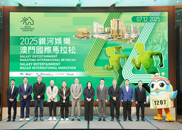 【特訊】由體育局、銀河娛樂集團及澳門田徑總會主辦的「2025銀河娛樂澳門國際馬拉松」將於本年12月7日(周日)舉行,賽事組委會於昨日(30)日舉行新聞發佈會公佈賽事詳情及報名安排。出席嘉賓包括體育局代局長李詩靈、銀河娛樂集團董事程裕昇、澳門田徑總會理事長陳步倩等。