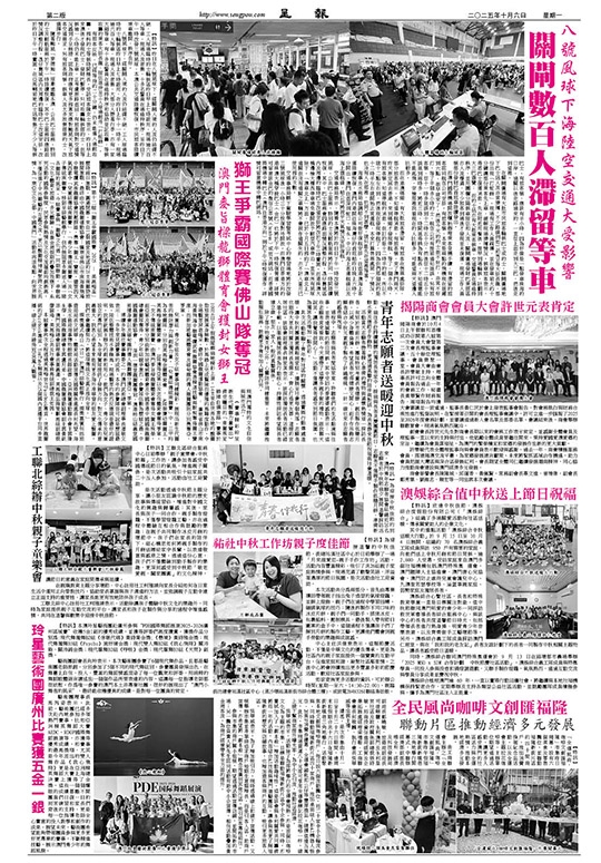 《賽事精彩紛呈 新生代醒獅力量輩出》備受矚目的「南獅規定樁陣自選套路」賽事於10月4日上午假媽閣廟前地精彩上演,14支來自世界各地的醒獅勁旅施展渾身解數,於高樁上完成驚險而優雅的高難度動作,令全場觀眾屏息喝采。最終中國龍獅運動協會 – 廣東省佛山市南海黃飛鴻中聯電纜武術龍獅協會憑精湛技藝與默契奪得獅王寶座;而新加坡藝威體育會及緬甸龍的傳人龍獅團則分別勇奪亞、季軍。