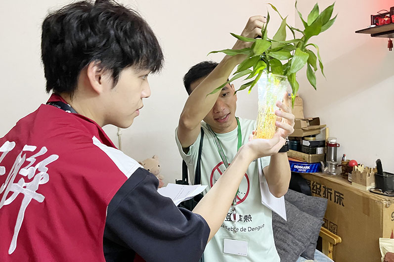 為進一步提升社區防疫效能,發揮“健康社區”計劃的協同作用,並協助居民辨識及清除常見蚊蟲孳生源,衛生局於今(13)日與澳門工會聯合總會、澳門街坊會聯合總會、澳門婦女聯合總會等社團合作,展開為期7天(10月13至19日)的“健康社區—全城家家戶戶清積水”防控雙熱社區聯合行動。每日動員約130名來自衛生局及社團的人員,分組深入社區,逐戶進行防蚊宣導及積水清理指導。首日行動重點針對關閘一帶的本地病例區域,共派出24支小隊,上門向居民講解雙熱的症狀、傳播途徑及關鍵防蚊措施,並在取得同意後,入戶協助檢查及清理積水,強化居民對孳生源的辨識與處理能力。