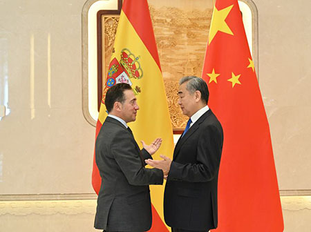 王毅表示,今年是中國同歐盟建交50周年。中歐關係的50年是相互成就、互利共贏的成功故事。志同道合是夥伴,求同存異也是夥伴。當前形勢下,中歐更應堅持夥伴定位,相互尊重、加強溝通、增進互信,共同應對各種挑戰。希望西班牙為推動中歐關係健康穩定發展發揮更加積極作用。