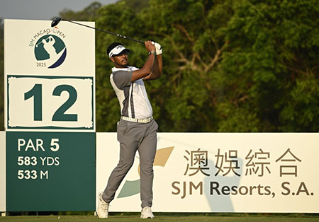 上午賽場最亮眼的是來自廣東的兩位年輕球員。葉沃城曾一度成為賽事領先者(-9),前後九洞皆在尾段連抓三鳥,全場共收穫7隻小鳥。雖在第2洞與第13洞出現失誤,尤其第13洞下水吞下雙柏忌,但他始終保持冷靜,賽後他開心表示:「能在語言相通的澳門參賽,感覺就像回到家一樣。」目前以3桿落後蘇萬那魯,暫列單獨第2名。白政愷同樣表現穩定,除第5洞因開球落水導致雙柏忌外,其餘洞皆順利完賽,兩輪合計低於標準桿8桿(65-67),暫並列第3。並列第3的還包括中國新星丁文一(63-69)、德國名將福斯(Dominic Foos)(64-68)、澳洲雙雄蘭金(Brett Rankin)(66-66)與湯普森(Jack Thompson)(64-68)、孟加拉國的拉赫曼(Siddikur Rahman)(66-66)。前段排名競爭激烈,週末勢必上演龍爭虎鬥。