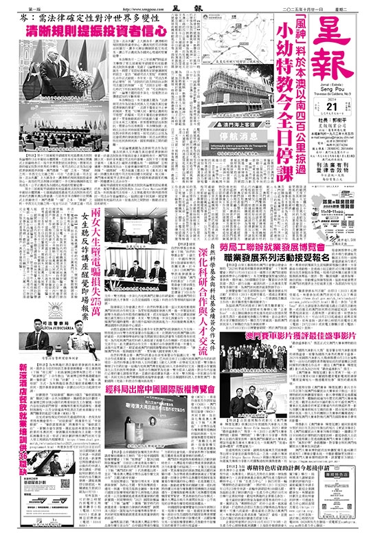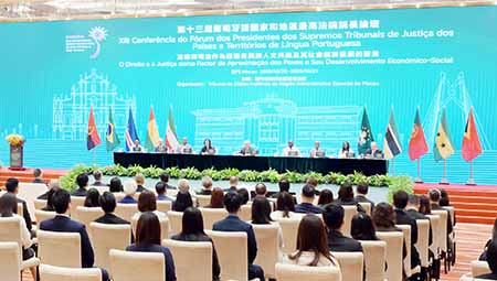 第十三屆葡萄牙語國家和地區最高法院院長論壇在中葡綜合體開幕,七個葡語國家最高司法法院院長或代表率代表團來澳出席會議。行政長官岑浩輝昨日在開幕式上致辭表示,澳門憑藉“一國”之本、“兩制”之利、中西文化交融之特,完全可以在“法律互通、司法互信、法治共贏”上大展身手:讓清晰的規則提振投資者信心,讓高效的司法保障合同履行,讓多元解紛機制降低交易成本,讓公平正義成為各國民心相通的堅實紐帶。