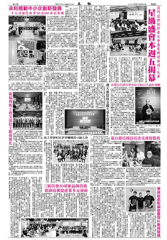 【特訊】永利一直致力推動本地中小企持續發展,協助他們開拓更多發展機遇。今年,永利繼續支持由澳門特別行政區政府招商投資促進局主辦的第三十屆澳門國際貿易投資展覽會(第30 屆MIF)。作為MIF 的商業夥伴之一,永利於展位N44 舉辦為期四天的「2025年本地企業合作交流會暨中小企直播銷售活動」,活動內容涵蓋創新企業嘉許、直播銷售及「專精特色店」主題線上營銷培訓等,吸引逾 200 家本地中小企業代表參與,展現永利支持本地企業發展、推動科技與商業創新的決心。