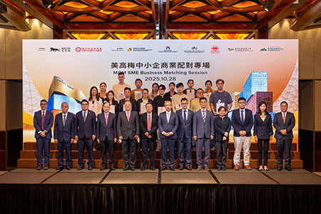 「2025年美高梅中小企商業配對專場」由美高梅與澳門中華總商會合辦,並得到經濟及科技發展局、招商投資促進局、生產力暨科技轉移中心、廠商聯合會、供應商聯合會、以及青年創業孵化中心成爲支持單位。活動假澳門美高梅宴會廳舉行,主禮嘉賓包括:中華總商會理事長馬志毅、招商投資促進局委員李藻森、經濟及科技發展局產業發展廳廳長劉傑麟、中央人民政府駐澳門特別行政區聯絡辦公室經濟部助理趙速、廠商聯合會會長崔煜林、生產力暨科技轉移中心首席高級經理李藹倫、供應商聯合會會長葉紹文,青年創業孵化中心負責人吳聰以及美高梅中國控股有限公司總裁及執行董事馮小峰。