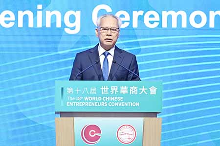 岑浩輝表示,華商是促進世界和平與發展的重要力量,廣大華商不僅推動了所在國家與地區經濟的繁榮發展,更成為中華優秀文化的傳播者、慈善公益事業的貢獻者、聯通中國與世界的紐帶與橋樑。世界華商大會自創辦以來,規模不斷擴大,作為全球華商最具影響力的交流平台,為推動經濟合作共贏、文化交流互鑒、民心相親相通作出了積極貢獻。