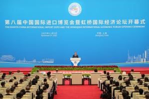 【中新社上海11月5日電】11月5日,中國國務院總理李強在上海出席第八屆中國國際進口博覽會暨虹橋國際經濟論壇開幕式,併發表主旨演講。