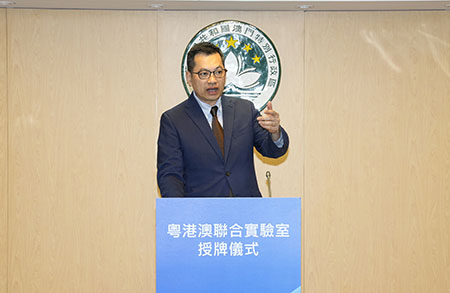 【特訊】“粵港澳聯合實驗室授牌儀式” 4日在澳門舉行。澳門科學技術發展基金(下稱“科技基金”)行政委員會主席余雨生和廣東省科學技術廳廳長王月琴出席儀式,並向獲批設立的兩所粵港澳聯合實驗室正式授牌。中央政府駐澳門聯絡辦公室經濟部代表張冠宇、澳門大學校長宋永華、澳門科技大學校長李行偉、經濟及科技發展局局長邱潤華、教育及青年發展局副局長丁少雄、藥物監督管理局副局長李世恩、郵電局行政委員會委員楊富榮、珠海市科技創新局局長黃南蔭、橫琴粵澳深度合作區經濟發展局副局長黃中堅等多位嘉賓共同出席見證。