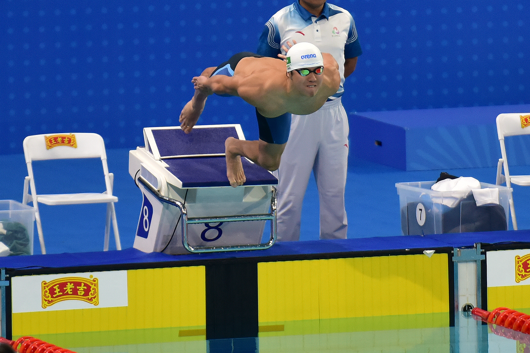 體育代表團昨(10)日聚焦在游泳項目,吳致軒(NG CHI HIN)早上出戰男子50米蝶泳預賽,以破澳門紀錄的24秒37排小組第6名,總成績排第15位取得半決賽資格,並於晚上半決賽再次打破澳門紀錄,游出較早上更快的23秒94總排名第10名,取得明天決賽的後備替補資格。而出戰同一項的隊友林志聰(LAM CHI CHONG)於早上預賽以25秒57排第28名完成賽事。
