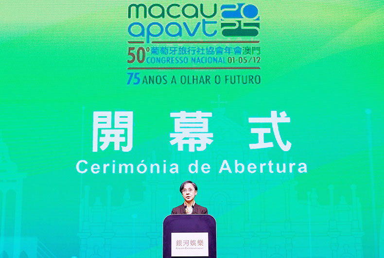 佩德羅‧科斯塔‧費雷拉致辭時表示,澳門是慶祝葡萄牙旅行社協會成立75週年及舉辦第50屆年會場地的不二之選。澳門這座充滿活力和安全的城市,長久以來是中西文化交匯之地,堪稱服務文化與尊重顧客的典範,既有經濟發展的堅實模型,更是通往世界最大出境旅遊市場的門戶。