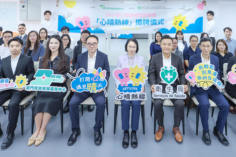 【特訊】為積極推動“健康社區”計劃,貫徹“關口前移”、“資源下沉”、“觀念轉變”三大政策方向,廣泛聯動各界社團力量,發揮協同效應,由衛生局和澳門青年發展服務中心共同合作設立的“心晴熱線28712356”24小時心理健康諮詢服務早前舉行揭牌儀式。