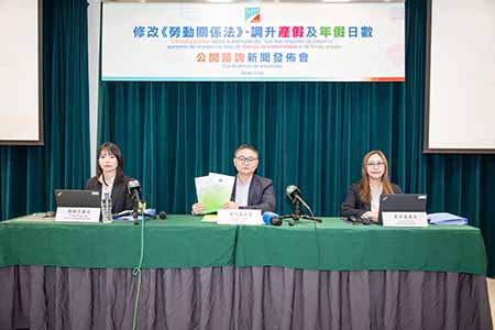 被問及調升產假對女僱員的影響,陳元童表示,僱員工作表現是企業重要的資產,調升產假有利增加僱員對公司的歸屬感,相信不會因調升產假令僱員勞動權益受到影響,若有受影響情況出現,陳元童建議員工向勞工局諮詢。