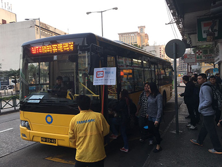 2月13日起,往返澳氹的MT4路線在每日上午7時至9時半期間加開5班特班車為巿民提供服務。首日清晨7時前,新褔利已經有多名員工帶備搭乘指示牌到達司打口站,精神奕奕地,致力為當日工作做好準備。他們向巿民導出增開班次訊息,亦為乘客作出搭乘指引及指示到車站排隊登車,以維持秩序和保持交通暢順。MT4路線首班特班車亦準時於7時啟航。首日運作大致暢順,巿民對加開班次表示歡迎,認為可節省不少候車及乘車時間,可以更輕鬆及精明地計劃行程。新褔利表示會因應客流變化,並按路面情況作適時調配,加派人手出站巡察掌握實時情況,來配合巿民乘車需要,令巿民對巴士服務保持信心。
