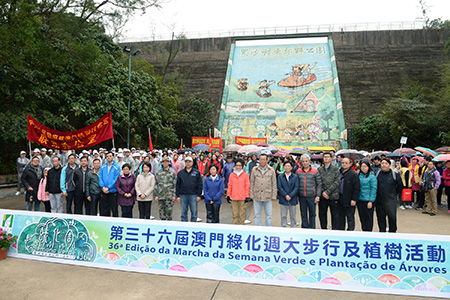 另外,第三十六屆澳門綠化週大步行及植樹活動昨日上午在黑沙水庫舉行,雖然天氣突然轉冷並下雨,但仍然無損市民參加行山植樹支持綠化的熱情,活動共吸引超過一千四百人報名及參與,參與團體及市民無懼多變的天氣走過兩千四百米的山路,最後在山頭再植上一千棵樹苗。行政法務司司長陳海帆及民政總署委員會主席戴祖義亦有出席,並身體力行種植樹木。
