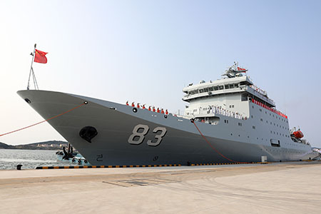 戚繼光艦是中國自行設計建造的最新型訓練艦,舷號83,於今年2月21日正式入列服役。該艦滿載排水量近萬噸,配備多套由中國自主研發、達到世界先進水平的教學裝備,可保障海軍學員和官兵完成近、遠海實習任務,同時還可承擔出國訪問、海外撤僑、重大自然災害救援等非戰爭軍事行動任務,是目前中國海軍噸位最大、現代化水平最高的專業訓練艦。