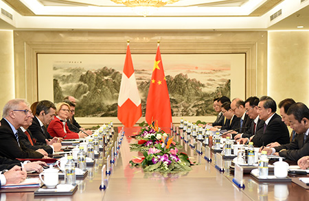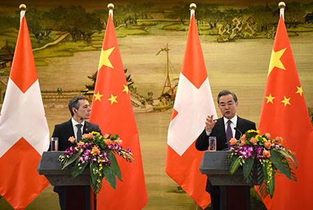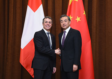王毅表示,中方願同瑞方共同推動雙邊關係在新的時期取得更大發展。一是繼續保持緊密交往,加強對雙邊關係發展的政治引領,把握合作機遇。二是充分釋放中瑞合作的創新潛力,把瑞士的創新優勢同中國的創新發展有機結合,推進兩國在“一帶一路”建設和財金等領域的創新合作。三是不斷充實中瑞關係的戰略內涵,共同為推動建設新型國際關係和構建人類命運共同體、維護開放型世界經濟貢獻力量。四是做平等和相互尊重的好夥伴,相互照顧彼此核心關切,並讓雙方人民更有獲得感,讓中瑞友好更加深入民心。
