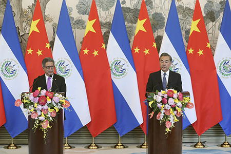 王毅指出,堅持一個中國原則,是公認的國際關係準則,是國際社會普遍共識,是中國同任何國家建立和發展關係的根本基礎。薩爾瓦多做出政治決斷,承認並承諾恪守一個中國原則,不設任何前提地同中國建交,同世界上絕大多數國家站到了一起。至此,世界上已有178個國家同中國建立外交關係。這再次充分證明,堅持一個中國原則是符合國際大義、順應時代潮流的正確選擇,是人心所向,是大勢所趨。