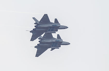 備受矚目的殲-20在本屆航展以新塗裝、新編隊、新姿態為現場觀眾帶來雙機低空盤旋、上昇轉彎、單機加力盤旋、戰鬥盤旋、大仰角拉起等一系列飛行動作,充分展示其良好的操控性能和優異的作戰性能。