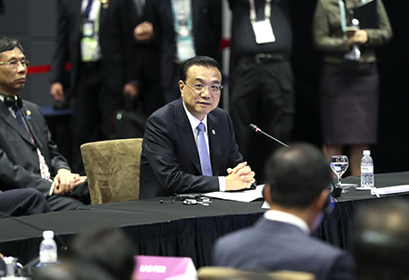 李克強表示,過去15年,國際和地區形勢發生深刻複雜變化,亞洲國家保持了總體和平穩定的良好局面,呈現出快速發展的上昇勢頭。15年來,中國—東盟關係也走過了不平凡的歷程,開展了全方位、多層次、寬領域合作,戰略內涵不斷豐富,開創了互利共贏的新格局,促進了地區發展繁榮。我們建成並昇級了發展中國家間最大的自貿區,貿易投資水平不斷得到提昇。我們樹立了妥處分歧的典範,全面有效落實《南海各方行為宣言》(DOC),保持了南海局勢的穩定。“南海行為準則”(COC)磋商取得重要進展,各方共同形成了單一磋商文本草案,並一致同意在2019年內完成第一輪審讀。中方願同東盟國家共同努力,在協商一致基礎上,爭取未來3年完成“準則”磋商。希望域外國家尊重域內國家的意願。相信域內國家有智慧,共同維護南海的和平穩定。