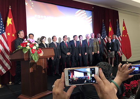 張平指出,40年來,無論是經貿關係還是人文交流,加州都走在全美各州前列。加州各級領導人和地方政府官員都非常支持中美關係,我們對此表示感謝。在發展中美關係過程中,包括僑界在內的各界人士為促進中美關係和兩國人民交流發揮了重要作用,希望各界朋友們繼續支持中美關係,為中美關係發展貢獻力量。